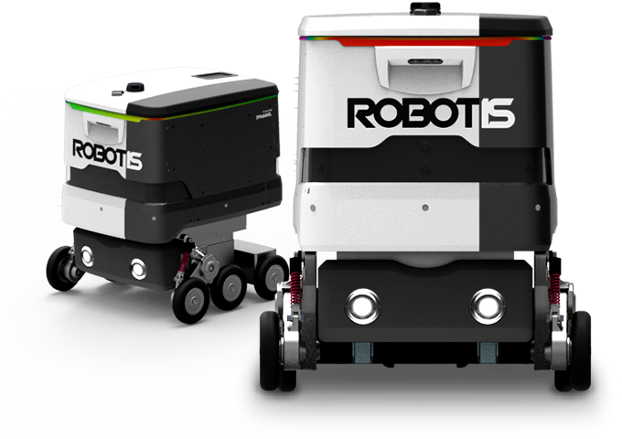 ROBOTIS GAEMI-1 は宅配便や食品配送サービスなどを提供するための屋外向けの自律走行搬送ロボットです。各種センサーで周辺環境や障害物を検出し、ディープラーニングAIに基づいて自律で動作します。