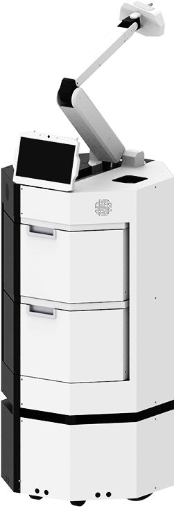 ROBOTIS GAEMI-0 は集合住宅やオフィスなどワークスペースの搬送サービスを提供する、ロボットアームが装着された屋内向けの自律走行搬送ロボットです。実生活空間の施設や設備を変更することなく、搬送サービスが提供可能です。